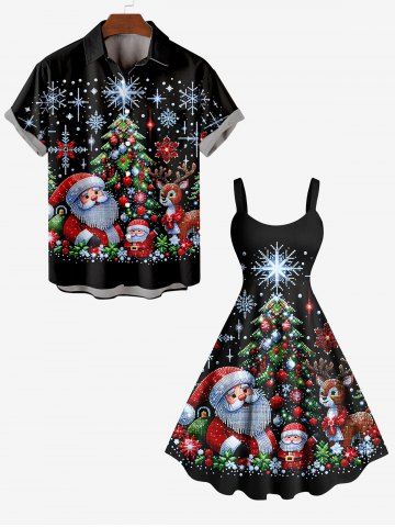 Plus Size Christmas Tree Snowflake Elk Santa Claus Print A Line Tank Dress - Black - 6x