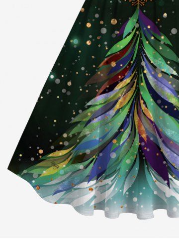 Plus Size Christmas Tree Snowflake Feather Light Spot Print Ombre Vintage Swing A Line Dress - Green - 4x