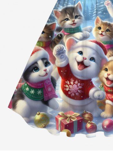 Plus Size Christmas Tree Snowflake Glitter Galaxy Cute Cat Print Vintage Swing A Line Dress - Black - Xs