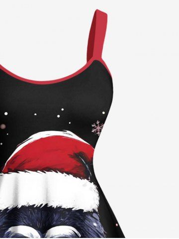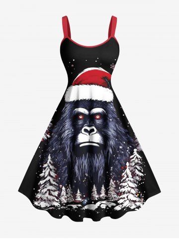 Plus Size Christmas Tree Snowflake Hat Gorilla Print A Line Dress - Black - 5x