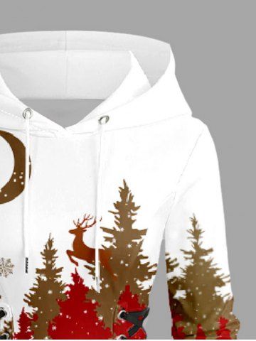Plus Size Christmas Tree Snowflake Moon Colorblock Print Lace Up Drawstring Hoodie Dress - Red - L