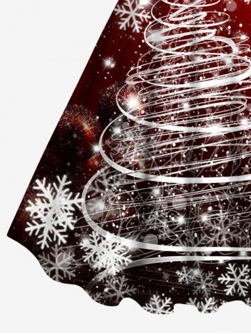 Plus Size Christmas Tree Snowflake Ombre Galaxy Print A Line Tank Dress - Red - 5x