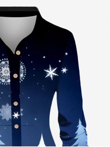 Plus Size Christmas Tree Snowflake Ombre Galaxy Print Half Button A Line Shirted Dress - Blue - M