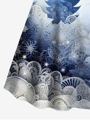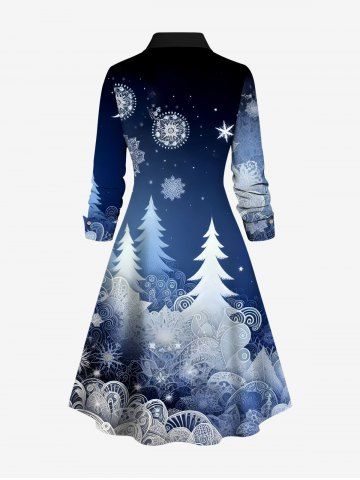 Plus Size Christmas Tree Snowflake Ombre Galaxy Print Half Button A Line Shirted Dress - Blue - 5x