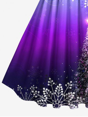 Plus Size Christmas Tree Snowflake Ombre Galaxy Print Vintage Swing A Line Dress - Purple - Xs