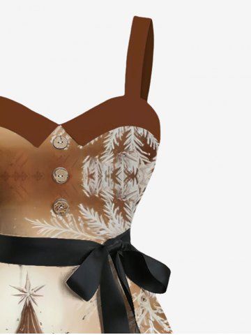 Plus Size Christmas Tree Snowflake Ombre Print Button A Line Dress with Removable Belt - Light Brown - 1x
