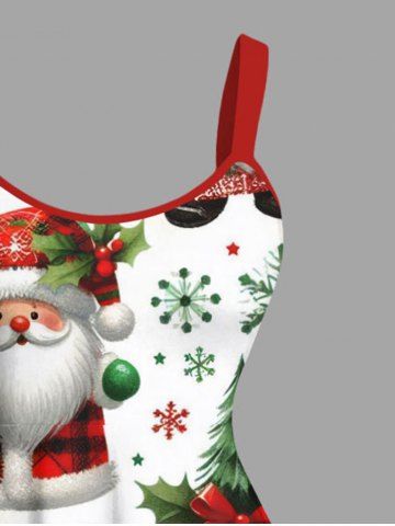 Plus Size Christmas Tree Snowflake Santa Claus Print A Line Dress - White - L