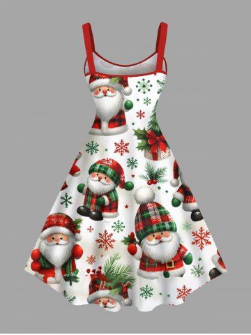 Plus Size Christmas Tree Snowflake Santa Claus Print A Line Dress - White - 3x