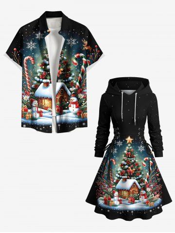 Plus Size Christmas Tree Snowflake Snowman Candy House Ombre Galaxy Print Lace Up Hooded Dress - Black - 2x