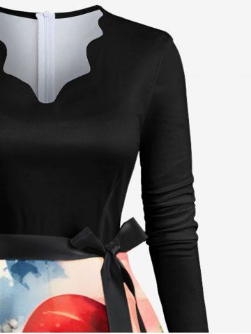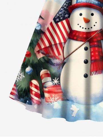 Plus Size Christmas Tree Snowflake Snowman Tie Dye Patriotic American Flag Print Scalloped Neck Dress with Tied Belt - Multi-a - Xl