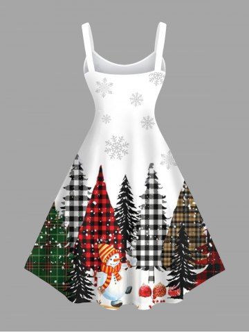 Plus Size Christmas Tree Snowman Ball Snowflake Print Tank Dress - Multi-a - 5x