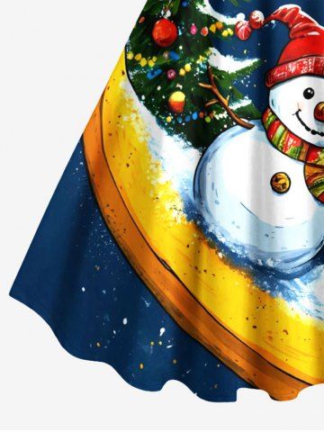 Plus Size Christmas Tree Snowman Banana Galaxy Print A Line Dress - Navy Blue - Xs
