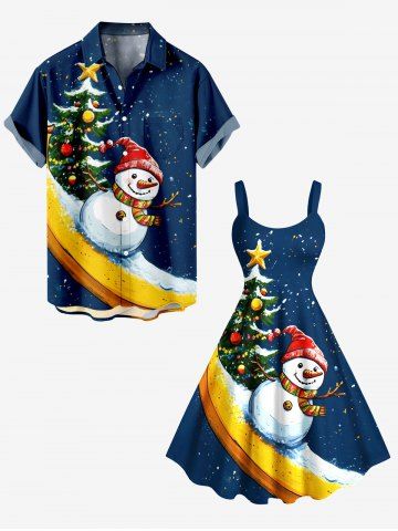 Plus Size Christmas Tree Snowman Banana Galaxy Print A Line Dress - Navy Blue - M