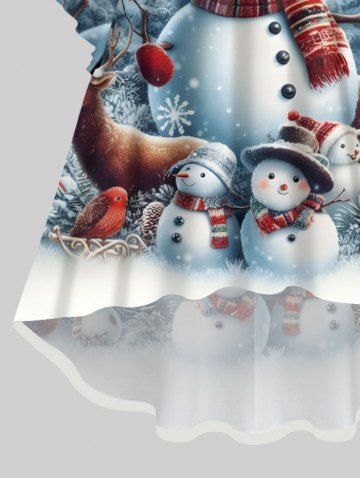 Plus Size Christmas Tree Snowman Elk Bird Ombre Print Flare Sleeve Ruched High Low Dress - Multi-a - L