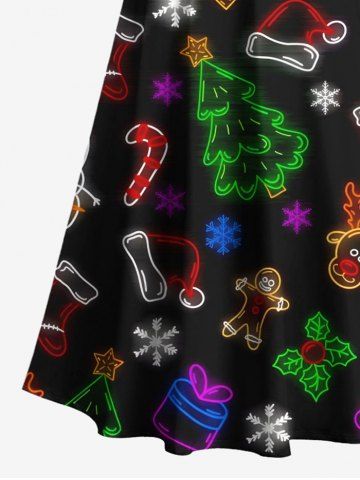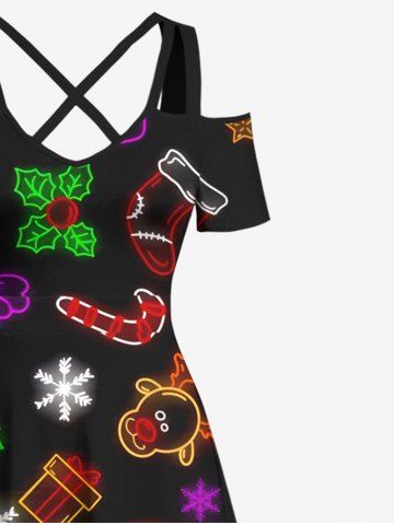 Plus Size Christmas Tree Snowman Elk Snowflake Gingerbread Man Bowknot Candy Fruit Print Cold Shoulder Crisscross Maxi Dress - Black - Xs
