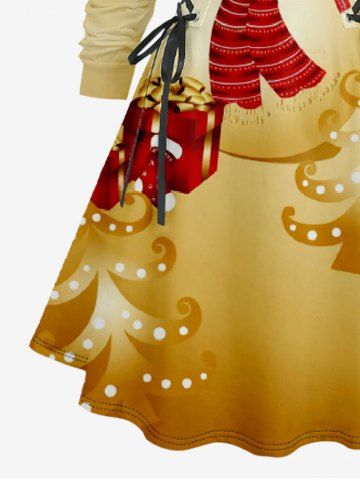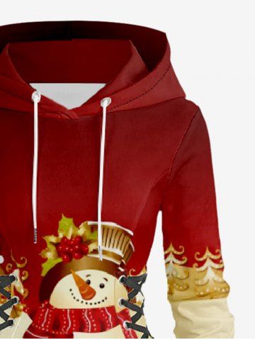 Plus Size Christmas Tree Snowman Gift Box Print Lace Up Drawstring Hoodie Dress - Red - S