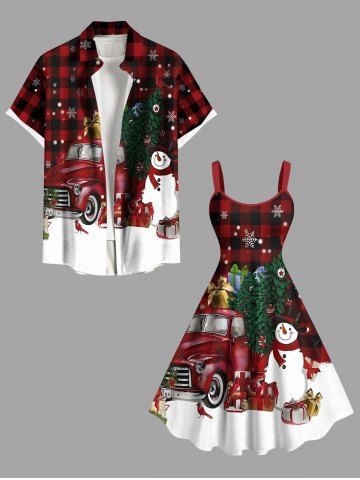 Dresses > Plus Size Christmas Tree Snowman Snowflake Car Gift Box Plaid Print Tank Dress