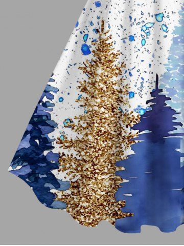 Plus Size Christmas Tree Snowman Snowflake Star Paint Splatter Sparkling Sequin 3D Print Tank Dress - White - 1x