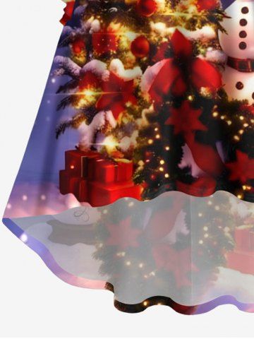 Plus Size Christmas Tree Snowman Street Light Star Snowflake Print Ruched Flare Sleeve High Low Dress - Multi-a - 6x