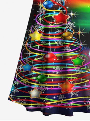 Plus Size Christmas Tree Star Ball Snowflake Rainbow Colorblock Print Cold Shoulder Crisscross Maxi Dress - Multi-a - 1x