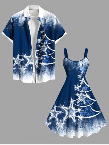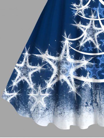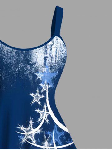 Plus Size Christmas Tree Star Distressed Colorblock Print Tank Dress - Blue - S