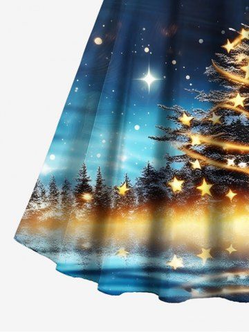 Dresses > Plus Size Christmas Tree Star Galaxy Print Scalloped V Neck Dress With A Belt