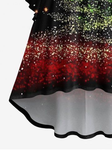 Plus Size Christmas Tree Star Galaxy Sparkling Sequin 3D Print Ruched Flare Sleeves High Low Dress - Black - M