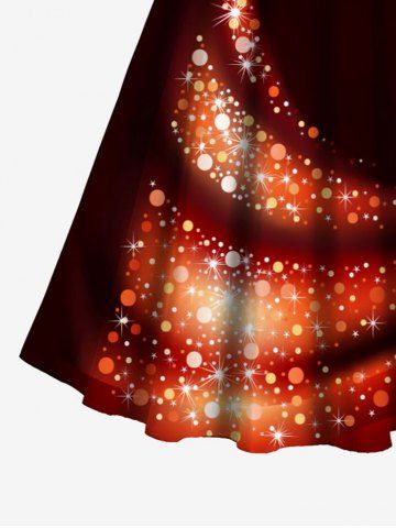 Dresses > Plus Size Christmas Tree Star Light Beam Glitter 3D Print Scalloped V Neck Dress With A Belt