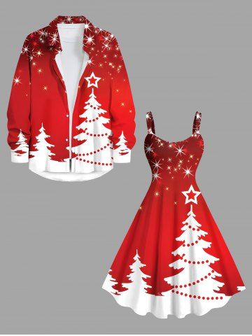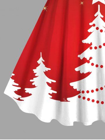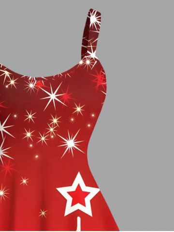 Plus Size Christmas Tree Star Light Colorblock Glitter 3D Print Tank Dress - Red - M