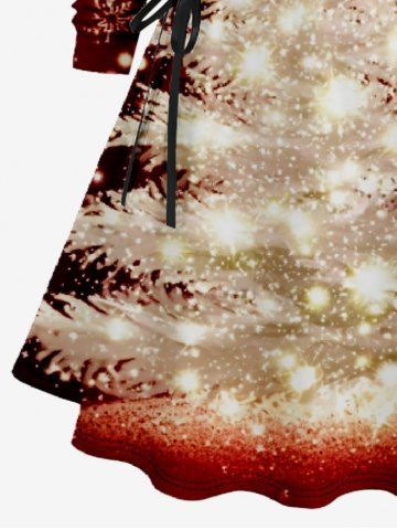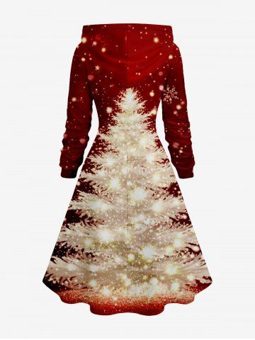 Plus Size Christmas Tree Star Light Glitter 3D Print Lace Up Drawstring Hoodie Dress - Red - L