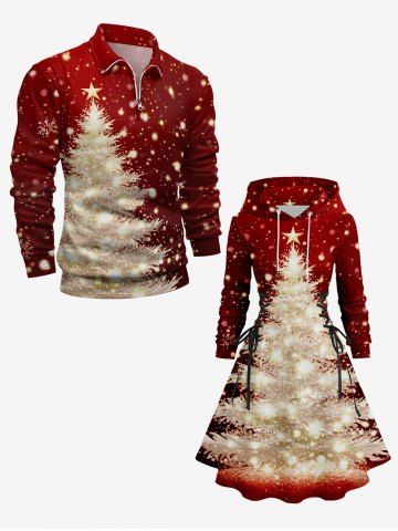 Plus Size Christmas Tree Star Light Glitter 3D Print Lace Up Drawstring Hoodie Dress - Red - 6x