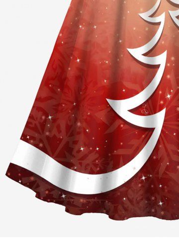Dresses > Plus Size Christmas Tree Star Snowflake Glitter 3D Print Scalloped V Neck Dress With A Belt