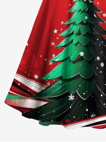 Plus Size Christmas Tree Star Snowflake Print Scalloped V Neck Dress With A Belt - Red - 4xl