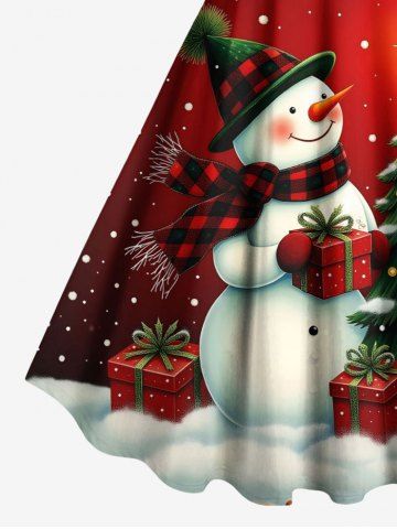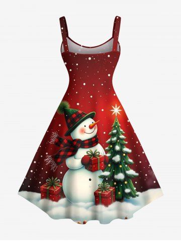 Plus Size Christmas Tree Star Snowman Snowflake Gift Box Print Tank Dress - Red - S