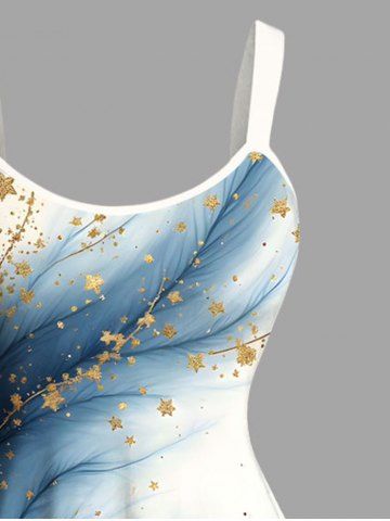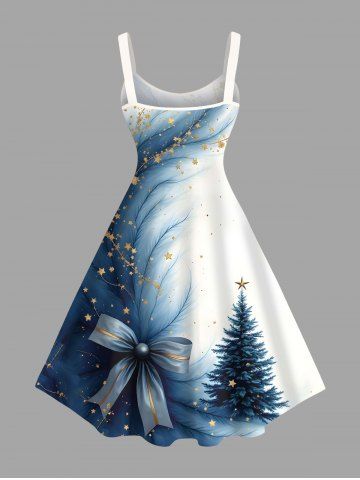 Plus Size Christmas Tree Stars Bowknot Ombre Print Tank Dress - Sky Blue - 1x