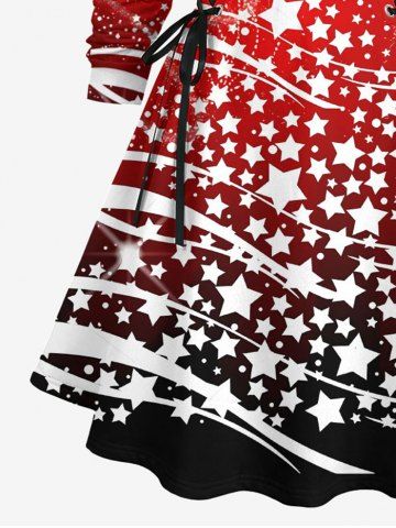 Plus Size Christmas Tree Stars Print Lace Up Drawstring Hoodie Dress - Red - 4x