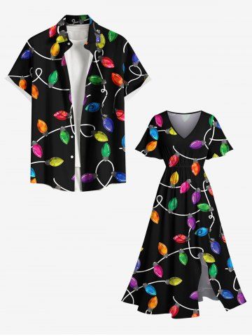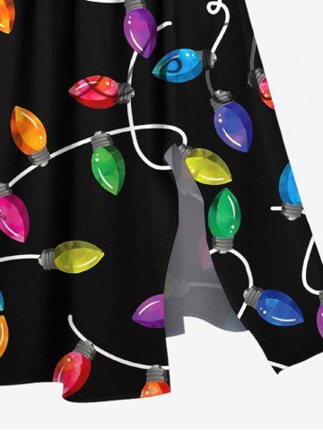 Plus Size Colorful Christmas Light Print Split Pocket A Line Midi Dress - Black - Xxs