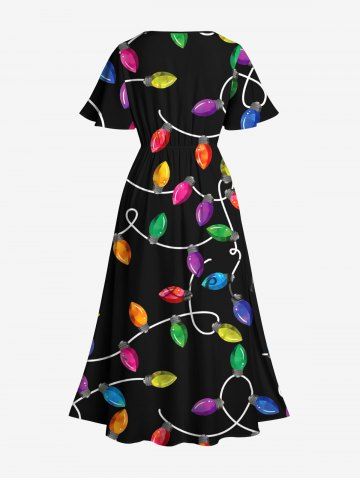 Plus Size Colorful Christmas Light Print Split Pocket A Line Midi Dress - Black - 2x
