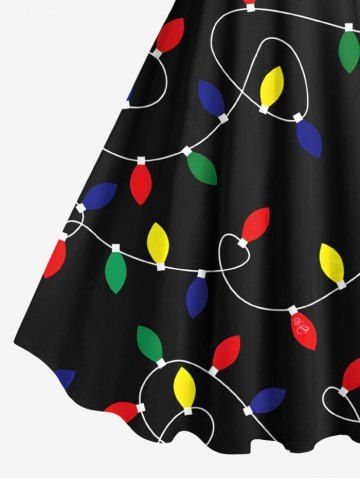 Plus Size Colorful Christmas Light Print Tank Dress - Black - 6x