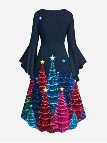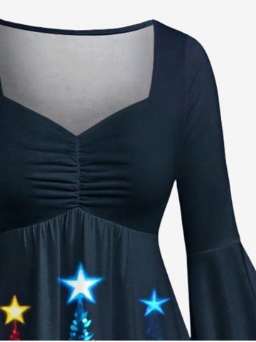 Plus Size Colorful Glitter Christmas Tree Print Ruched High Low Asymmetric Dress - Navy Blue - 4x
