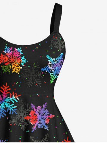 Plus Size Colorful Ombre Christmas Snowflake Galaxy Print A Line Dress - Black - 1x
