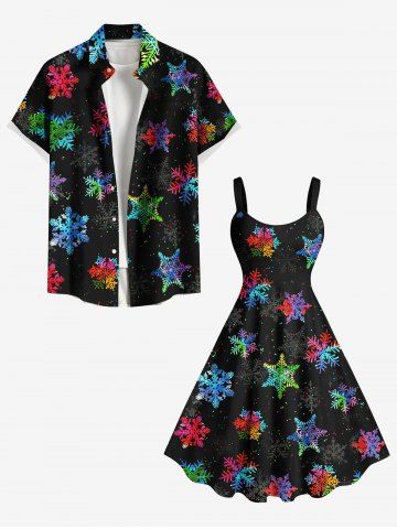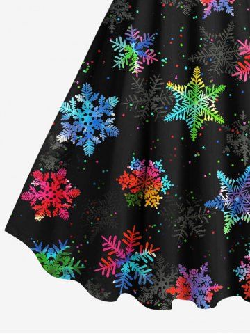 Plus Size Colorful Ombre Christmas Snowflake Galaxy Print A Line Dress - Black - 4x