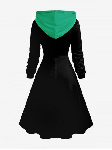 Plus Size Cosplay Christmas Tree Ball Snowflake Print Lace Up A Line Hooded Dress - Green - 3x