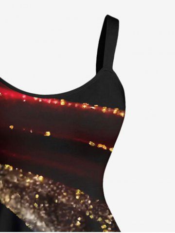 Plus Size Curve Glitter Light Beam Print Christmas A Line Dress - Black - Xs