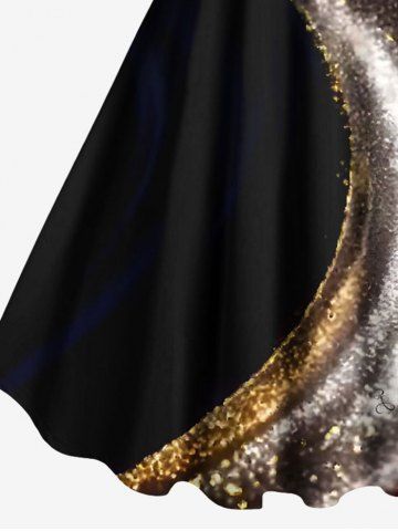 Plus Size Curve Glitter Light Beam Print Christmas A Line Dress - Black - 5x