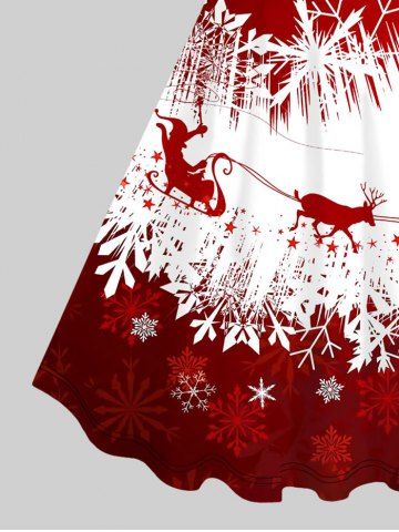 Plus Size Elk Snowflake Star Print Christmas Ombre Tank Dress - Red - Xs