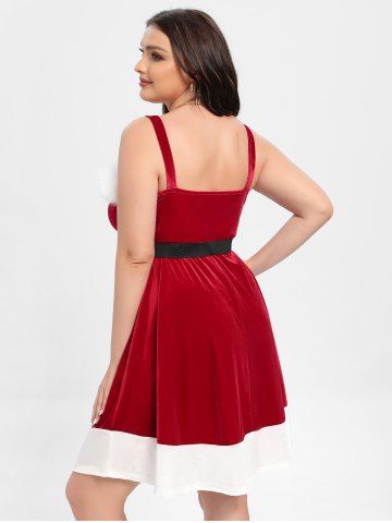 V*****i4Plus Size Velvet Two Tone Godet A Line DressColor: RED Size: 2X | US 18-20The dress is very soft material. if you have large boobs get a size larger. The white part is not separate from the dress, so for it to fit, you need a good bra. I would buy another. I am happy with what I bought for the price. Thank you.
