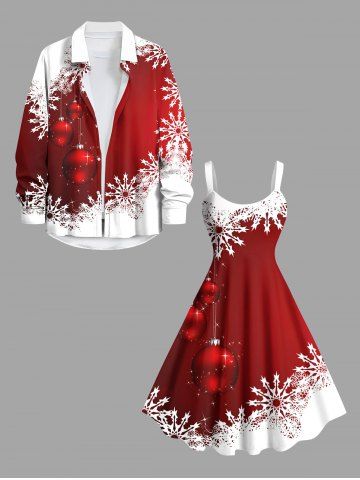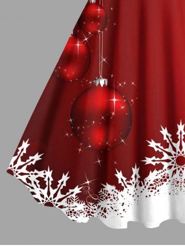 Plus Size Christmas Snowflake Ball Print A Line Dress
