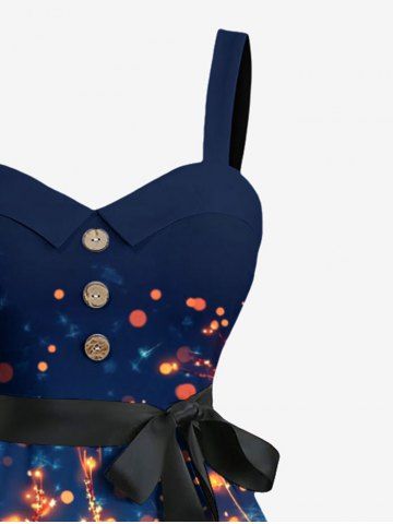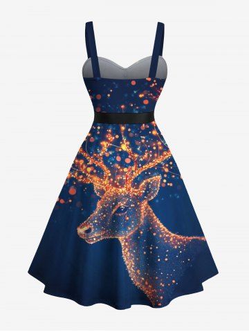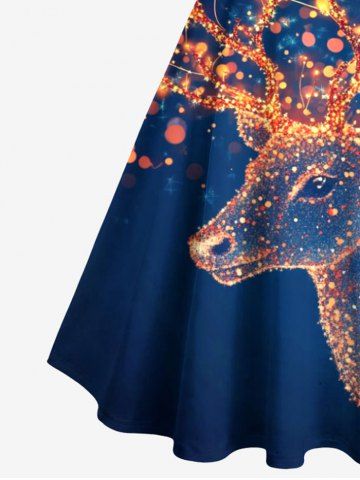 Plus Size Glitter Christmas Elk Light Spot Print Ombre Button A Line Dress with Removable Belt - Midnight Blue - 4x