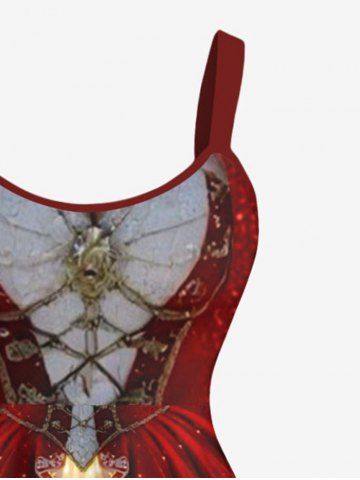Plus Size Glitter Christmas Light 3D Costume Print A Line Dress - Red - Xs